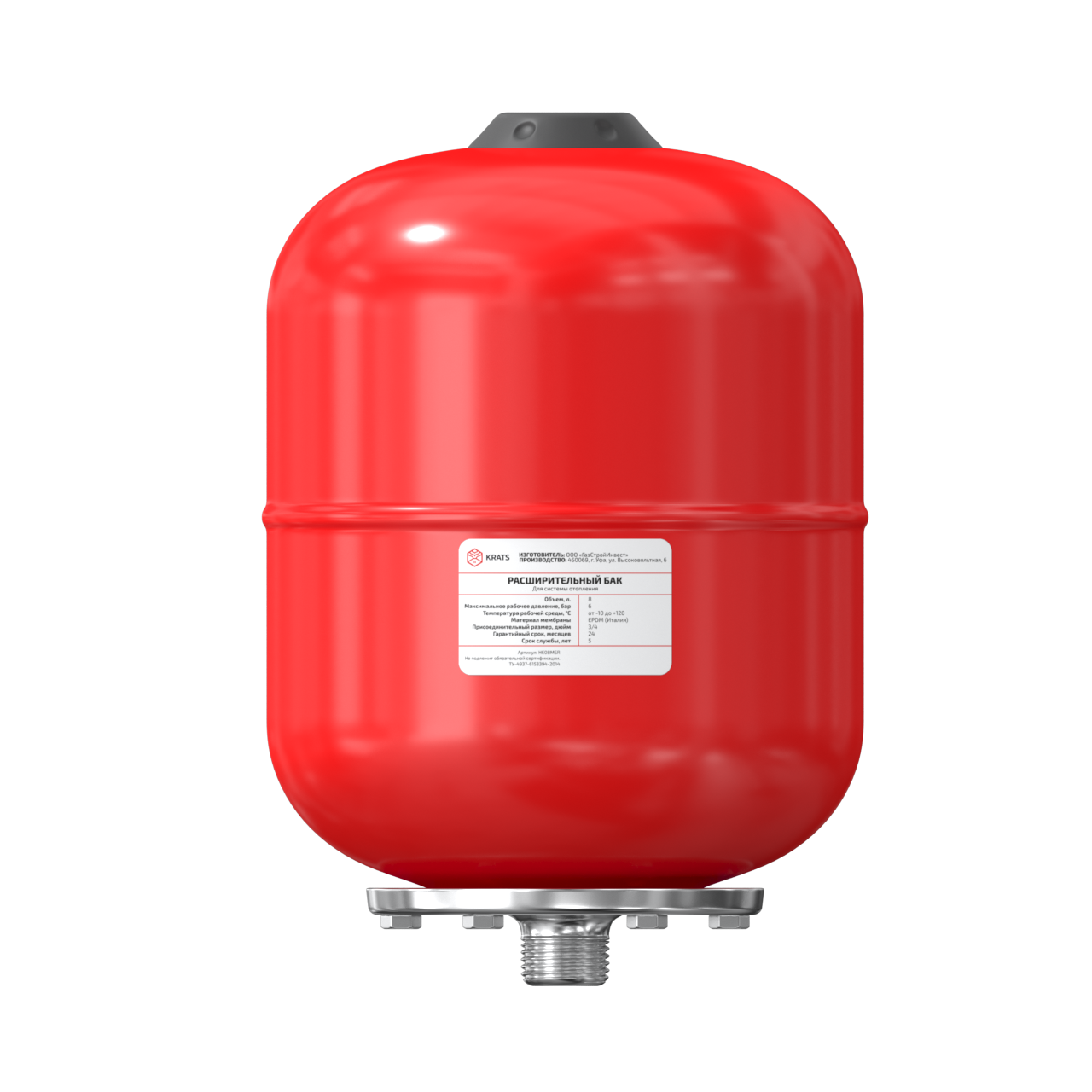 Производители используют для изготовления мембранных баков высококачественную нержавеющую сталь, которая неподвержена коррозии. В нижней стороны агрегата располагается отверстие для подсоединения к водопроводной или отопительной системе. На верхней части располагается ниппель, посредством которого осуществляется нагнетание воздуха в систему.